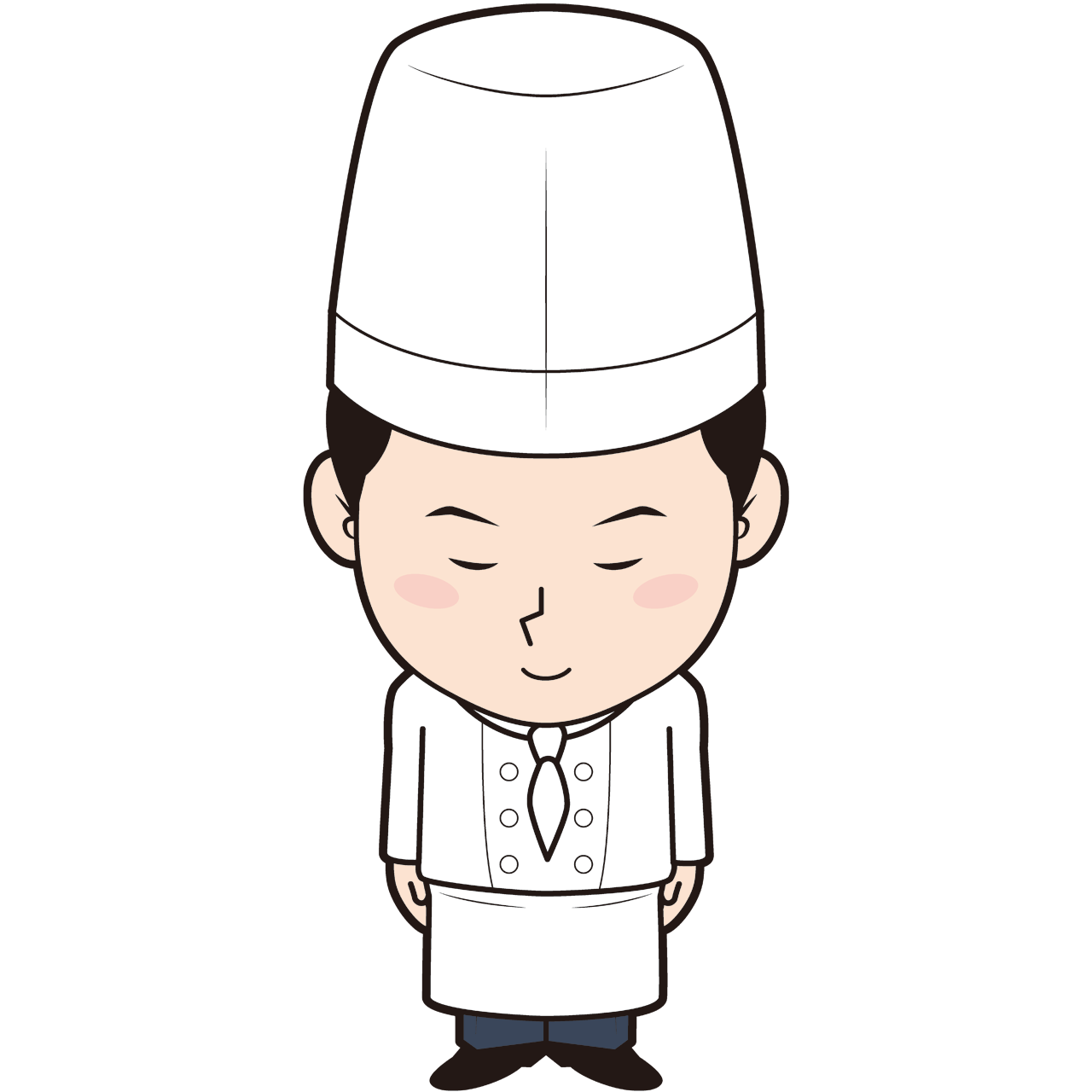 素材堂のイラストお辞儀シリーズ「お辞儀するシェフ(00424)」のデータです。ZIPファイルの中には、